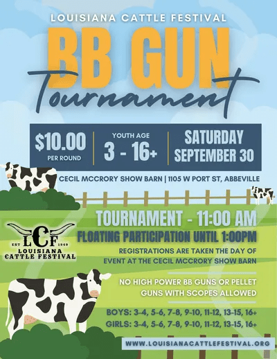 The Louisiana Cattle Festival, under new leadership this year, is bringing back the Louisiana Cattle Festival Cattle Show on Friday and Saturday, September 29 and 30, at the Cecil McCrory Exhibit Building in Abbeville. The entry deadline is Friday, September 15th. You do not want to miss this one— it is open to youth cattle exhibitors statewide. As part of the Louisiana Cattle Festival, these exhibitors will compete for a fantastic lineup of prize packages, including brand-new custom buckles.
