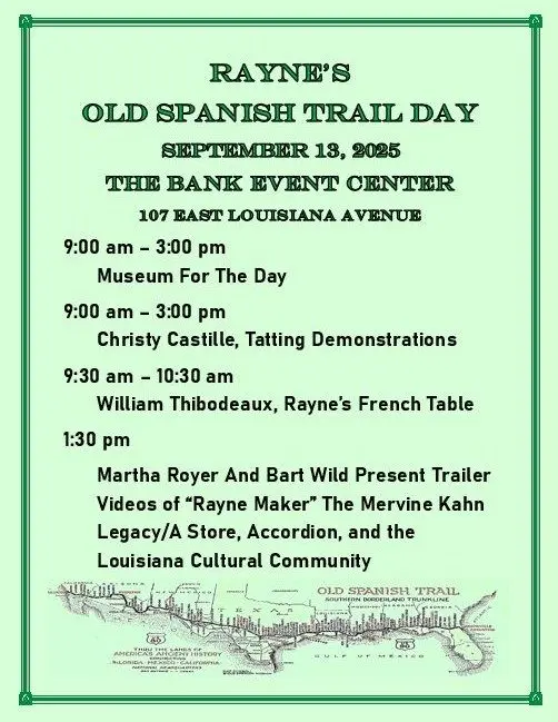 The City of Rayne is excited to announce the return of the Old Spanish Trail Day Open Car & Truck Show. This year’s event is scheduled for Saturday, September 13, 2025, from 9 AM to 3 PM in Historic Downtown Rayne.