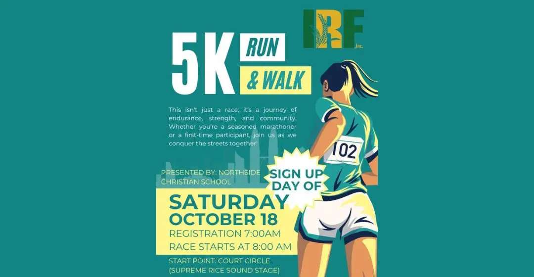 The international Rice Festival 5K run presented by Northside Christian will take place Saturday, October 18th. Race day registration and packet pick up is at 7AM at the Court Circle near the main platform, which is also the starting location for the race. Registration is handled by Pelican Timing.T CIRCLE RACE START TIME: 8 AM.